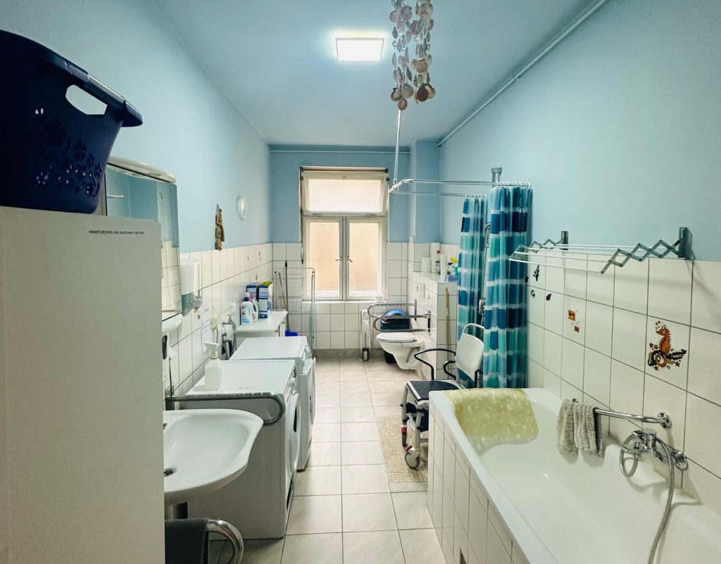 Die Wohngemeinschaften in Berlin im Neuköllner Kiez bieten pflegebedürftigen Menschen ein lebendiges, gleichzeitig gut geschütztes Zuhause. Die zentrale Lage, gute Erreichbarkeit und die überschaubare Wohnstruktur ermöglichen ein selbstbestimmtes Leben im Alltag, kombiniert mit fachkundiger Betreuung rund um die Uhr.